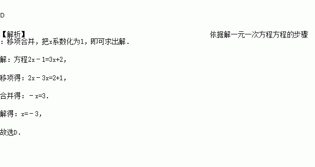 A. x=1 B. x=﹣1 C. x=3 D. x=﹣3