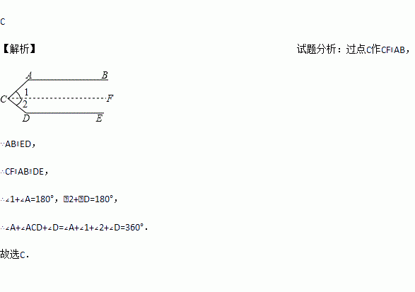 如图,AB∥ED,则∠A+∠C+∠D=( )
