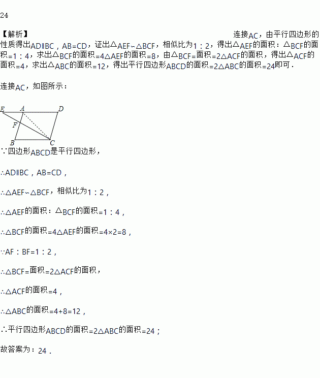 如图,点在平行四边形的边上,且,连接并延长,交 的延长线于点,若的面积为2,则平行四边形的面积为__________.