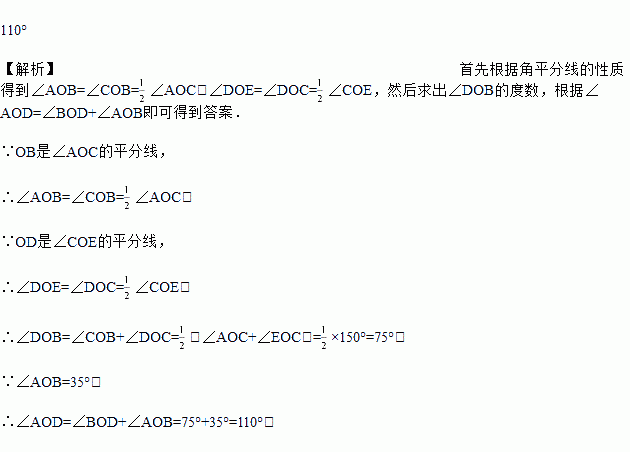 如图,OB是∠AOC的平分线,OD是∠COE的平分线,∠AOE=150°,∠AOB=35°,求∠AOD的度数.