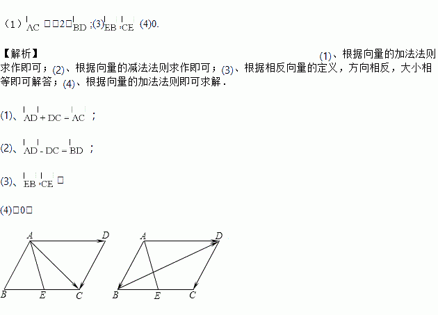 已知□ABCD,点E是 BC边的中点,请回答下列问题: