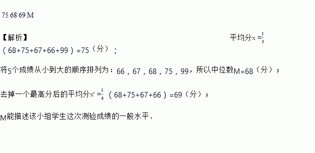 一次测验中,某学习小组5名学生成绩如下(单位:分):68 、75、67、66、99.这组成绩的平均分