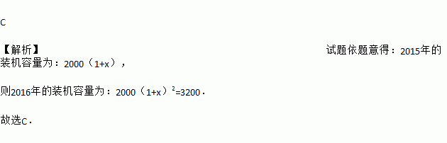 2014年底,我国核电装机容量大约为2000万千瓦,到2016年底我国核电装机容量将达到约3200万千瓦.若设平均每年的增长率为x,则可列方程为( )