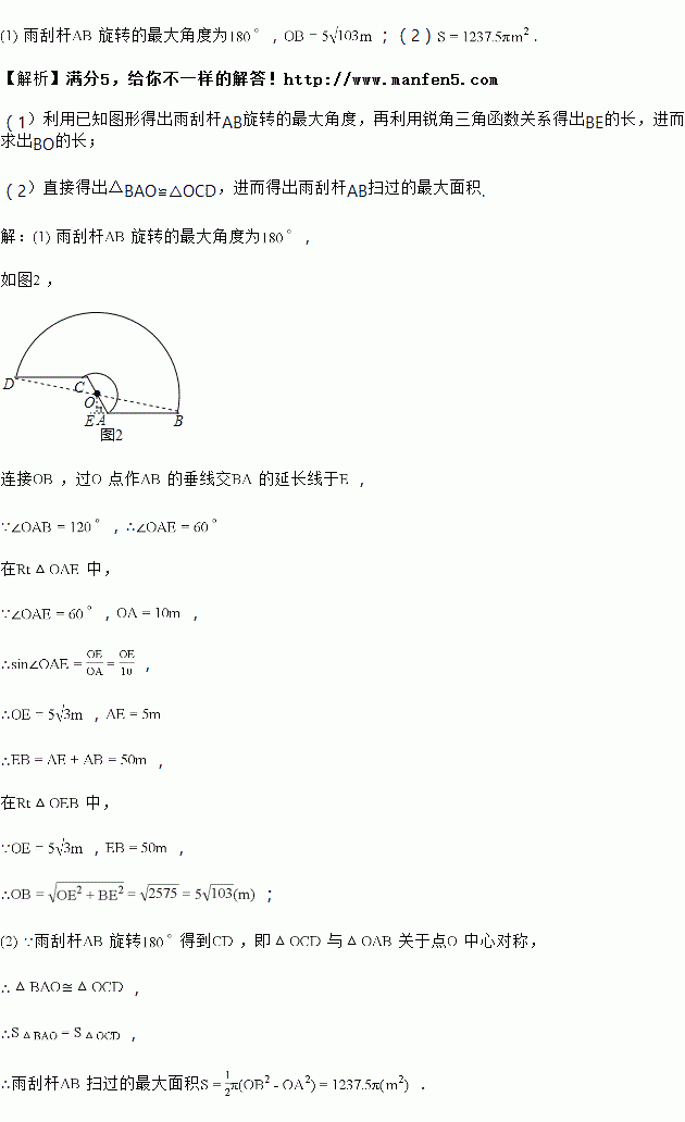 一辆汽车的背面,有一种特殊形状的刮雨器,忽略刮雨器的宽度可抽象为一条折线,如图![]()