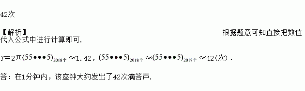 ,其中T表示周期(单位:秒),l表示摆长(单位:米),g=9.8米/秒2.假如一台座钟摆长为0.5米,它每摆动一个来回发生一次滴答声,那么在1分钟内,该座钟大约发出了多少次滴答声?(π≈3.14)