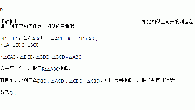如图,△ABC中,∠C=90°,CD⊥AB,DE⊥AC,则图中与△ABC相似的三角形有( )