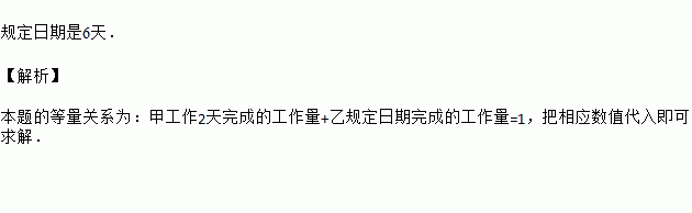 有一项工程,若甲队单独做,恰好在规定日期完成,若乙队单独做要超过规定日期3天完成;现在先由甲、乙两队合做2天后,剩下的工程再由乙队单独做,也刚好在规定日期完成,问规定日期多少天?