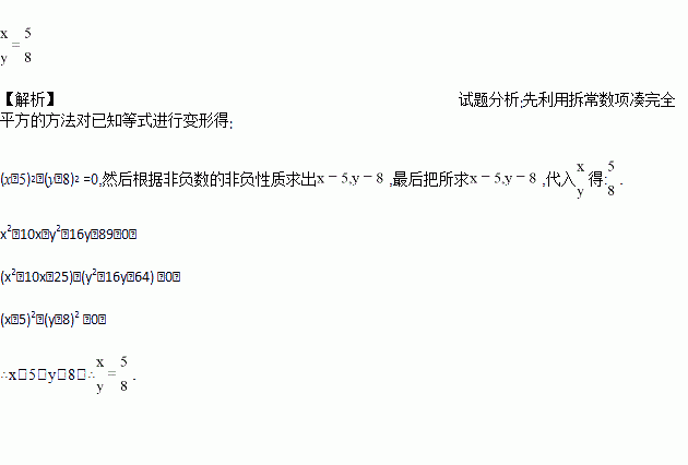 已知x2-10x+y2-16y+89=0,求的值.
