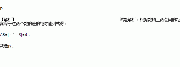 若数轴上表示﹣1 和 3 的两点分别是点 A 和点 B,则点 A 和点 B 之间的距离 是( )
