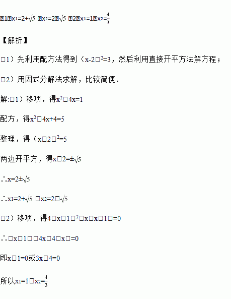 (1)x2﹣4x+1=0