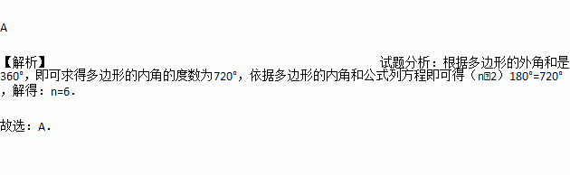 已知一个多边形的内角和是外角和的2倍,则此多边形的边数为 ( )