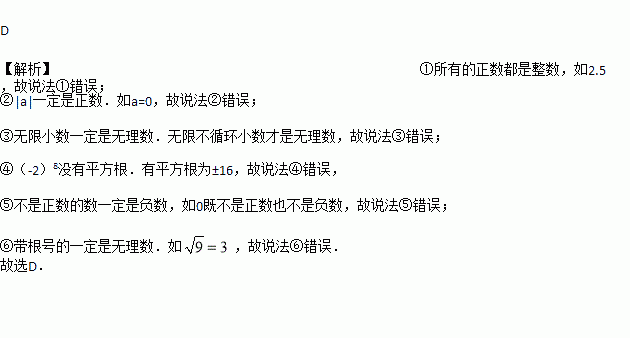 没有平方根。 ⑤不是正数的数一定是负数。⑥带根号的一定是无理数。