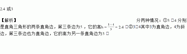 已知直线三角形的两边长分别为,,则第三边上的高线上为__________.