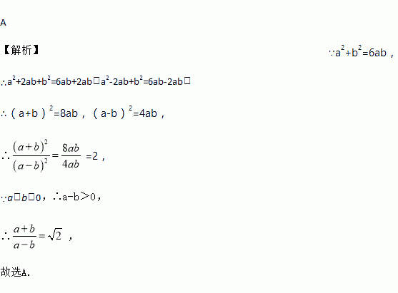 已知a2+b2=6ab且a>b>0,则的值为( )
