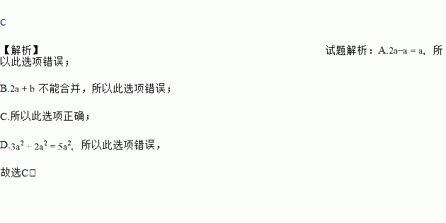 C. ﹣a2b+2a2b=a2b D. 3a2+2a2=5a4