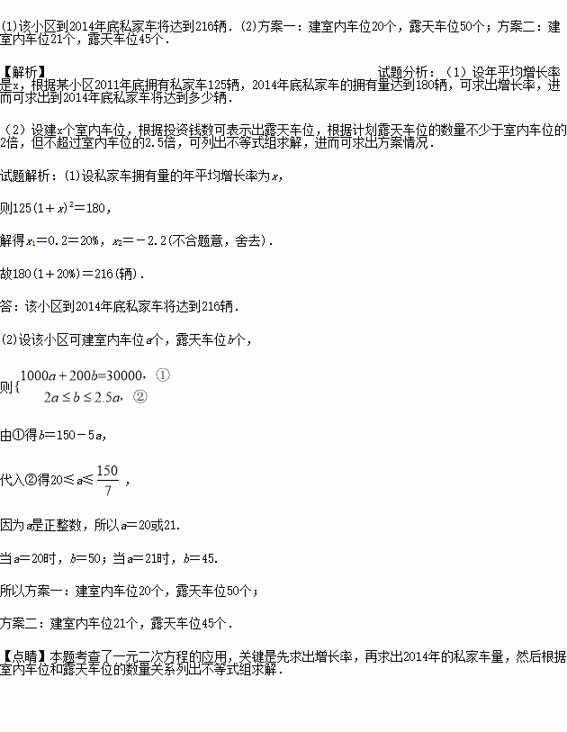 (1)若该小区2011年底到2014年底私家车拥有量的年平均增长率相同,则该小区到2014年底私家车将达到多少辆?