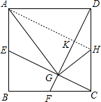 分析:连接AH,由四边形ABCD是正方形与点E、F、H分别是AB、BC、CD的中点,易证得△BCE≌△CDF与△ADH≌△DCF,根据全等三角形的性质,易证得CE⊥DF与AH⊥DF,根据垂直平分线的性质,即可证得AG=AD,由直角三角形斜边上的中线等于斜边的一半,即可证得HG=