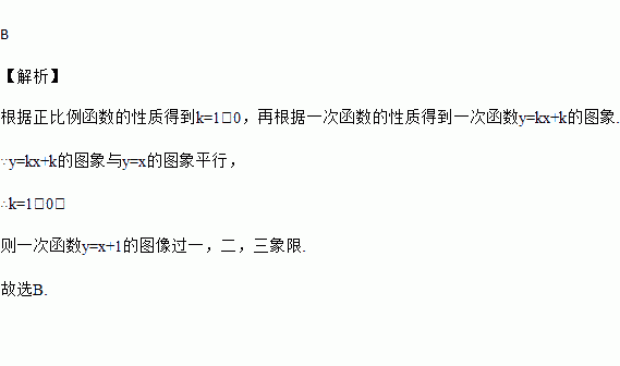 已知y=kx+k的图象与y=x的图象平行,则y=kx+k的大致图象为( )