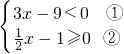 由①得:x<3,