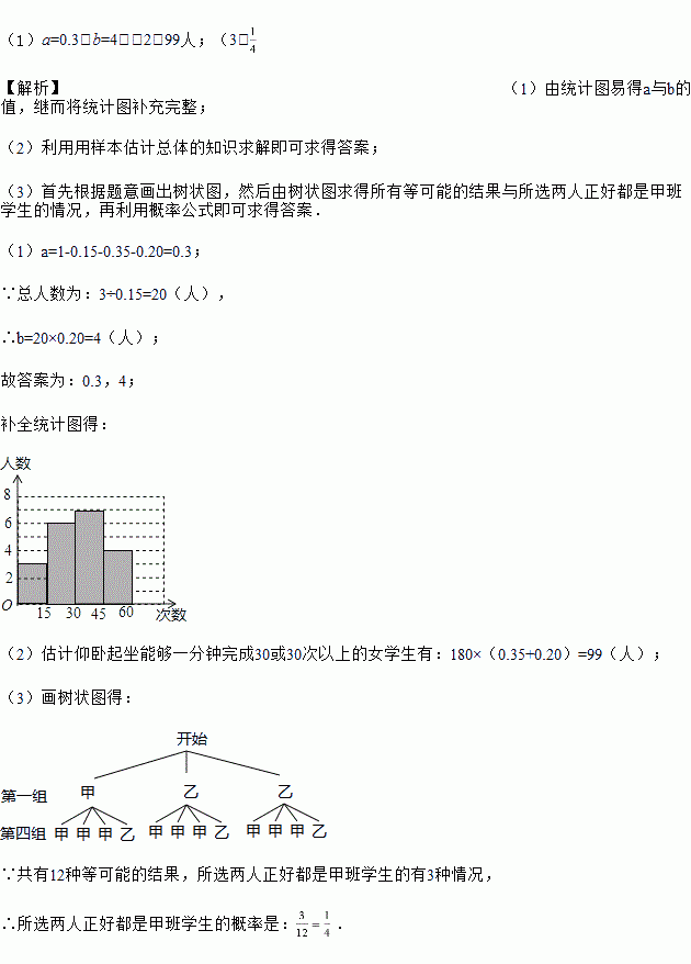£¨2£©Èç¹û¸ÃУÆßÄê¼¶¹²ÓÐÅ®Éú180ÈË£¬¹À¼ÆÑöÎÔÆð×øÄܹ»Ò»·ÖÖÓÍê³É30»ò30´ÎÒÔÉϵÄŮѧÉúÓжàÉÙÈË£¿