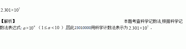 把数23010000用科学计数法表示为 ________________.