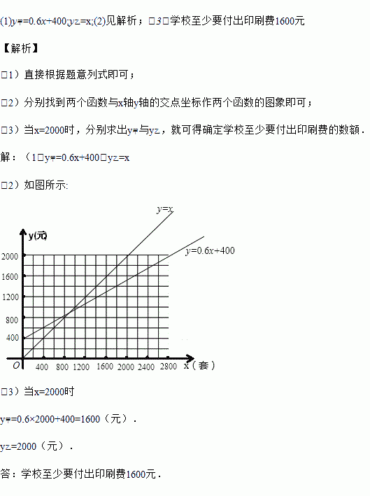 (3)若学校有学生2000人,为保证每个学生均有试卷,则学校至少要付出印刷费多少元?