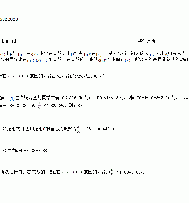 该校共有学生1000人,请估计每月零花钱的数额x在![]()