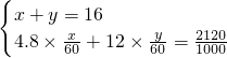 分析:先设小明上坡、下坡各用了x,y分钟,根据去学校共用了16分钟,小明在上坡路上的平均速度是4.8千米/时,而他在下坡路上的平均速度是12千米/时,列出方程,求出方程的解即可.