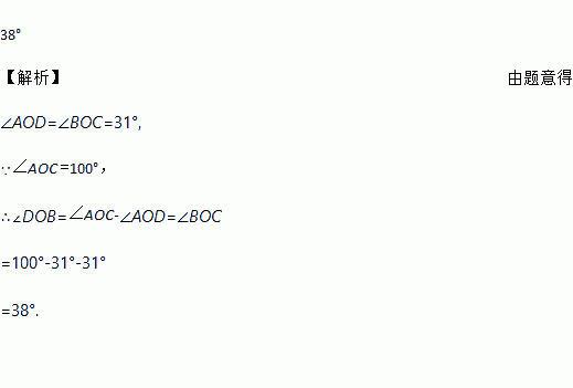 如图,△ODC是由△OAB绕点O 顺时针旋转31°后得到的图形,若点D 恰好落在AB上,且∠AOC 的度数为100°,则∠DOB的度数是______.