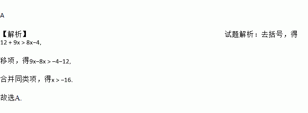 不等式12+9x>4(2x-1)的解集是( )