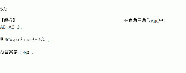 直角三角形ABC中,AB=AC=3,那么BC=_____.