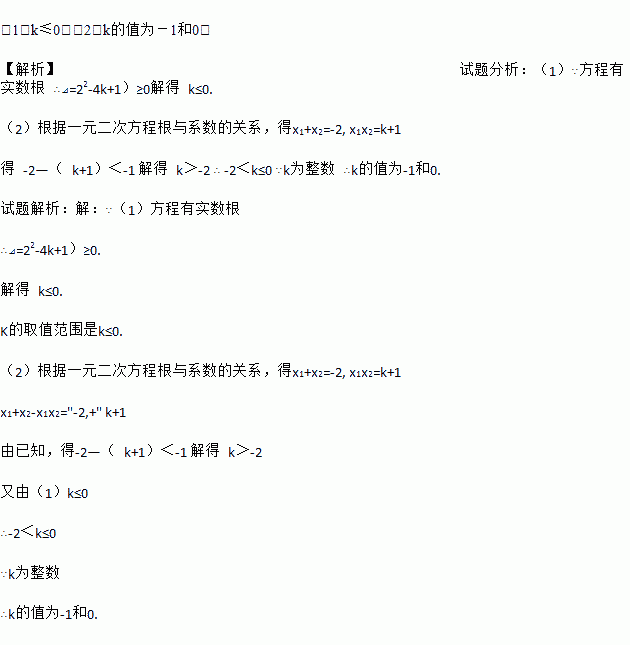 (2)如果x1+x2-x1x2<-1且k为整数,求k的值.