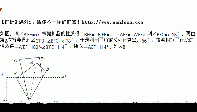 如图1是AD∥BC的一张纸条,按图1→图2→图3,把这一纸条先沿EF折叠并压平,再沿BF折叠并压平,若图3中∠CFE=18°,则图2中∠AEF的度数为( )![]()