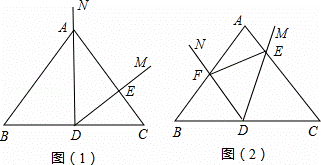 △ABC中,AB=AC,D为BC的中点,以D为顶点作∠MDN=∠B.![]()