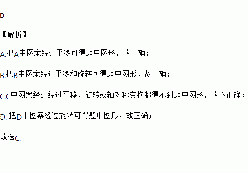 下列基本图形中经过平移、旋转或轴对称变换后不能得到右图的是( )