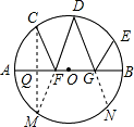 分析:作C关于AB的对称点M,作E关于AB的对称点N,连接CM,FM,求出∠AFM=∠BFD,推出D、F、M三点共线,D、G、N三点共线,求出弧AM=60°,弧BN=20°,即可求出答案.