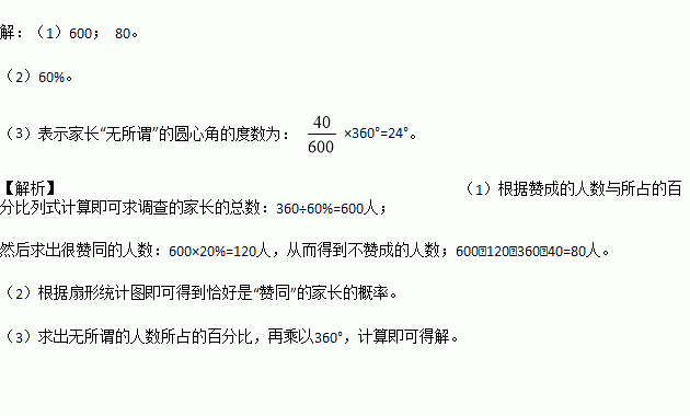 (3)求图②中表示家长“无所谓”的扇形圆心角的度数.