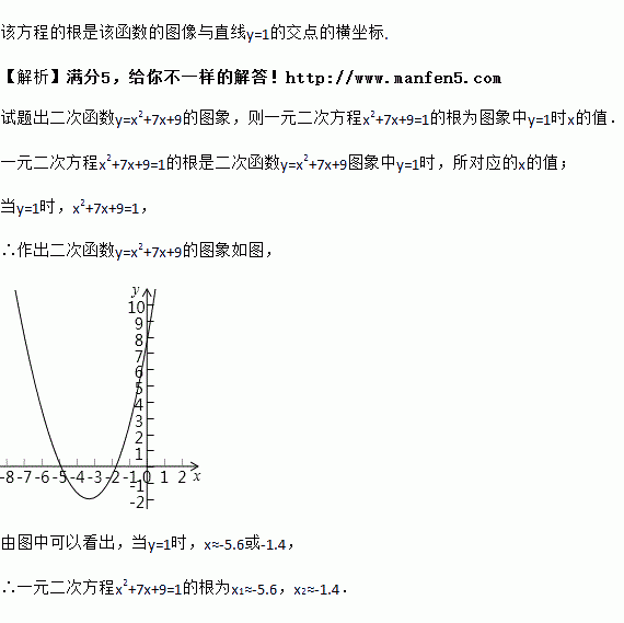 一元二次方程x2+7x+9=1的根与二次函数y=x2+7x+9的图像有什么关系? 试把方程的根在图像上表示出来.