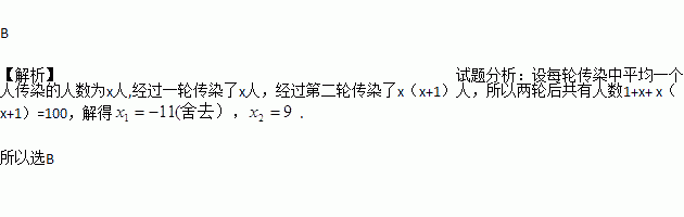 有一人患了流感,经过两轮传染后共有100人患了流感,那么每轮传染中平均一个人传染的人数为( )