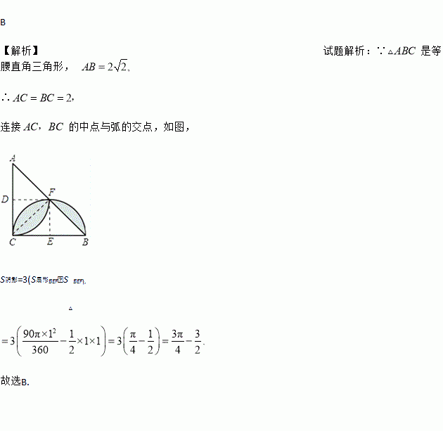 如图,△ABC 是等腰直角三角形,分别以直角边 AC,BC 为直径画弧,若 AB=2,则图中阴影部分的面积是( )