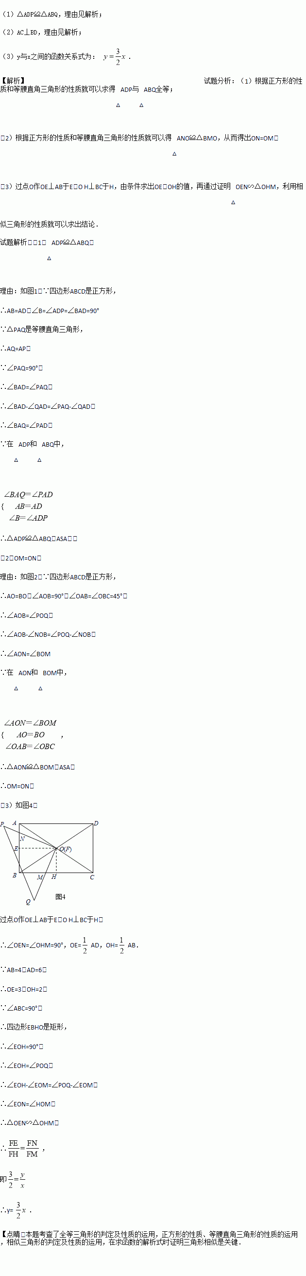 (3)如图3,将(2)中的“正方形”改成“长方形”,其它的条件不变,且AB=4,AD=6,FM=x,FN=y,试求y与x之间的函数关系式.