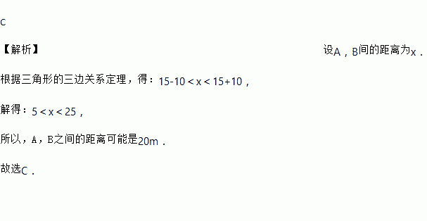 如图,为估计池塘岸边A,B的距离,小明在池塘的一侧选取一点O,测得OA=15米,OB=10米,A,B间的距离可能是( )