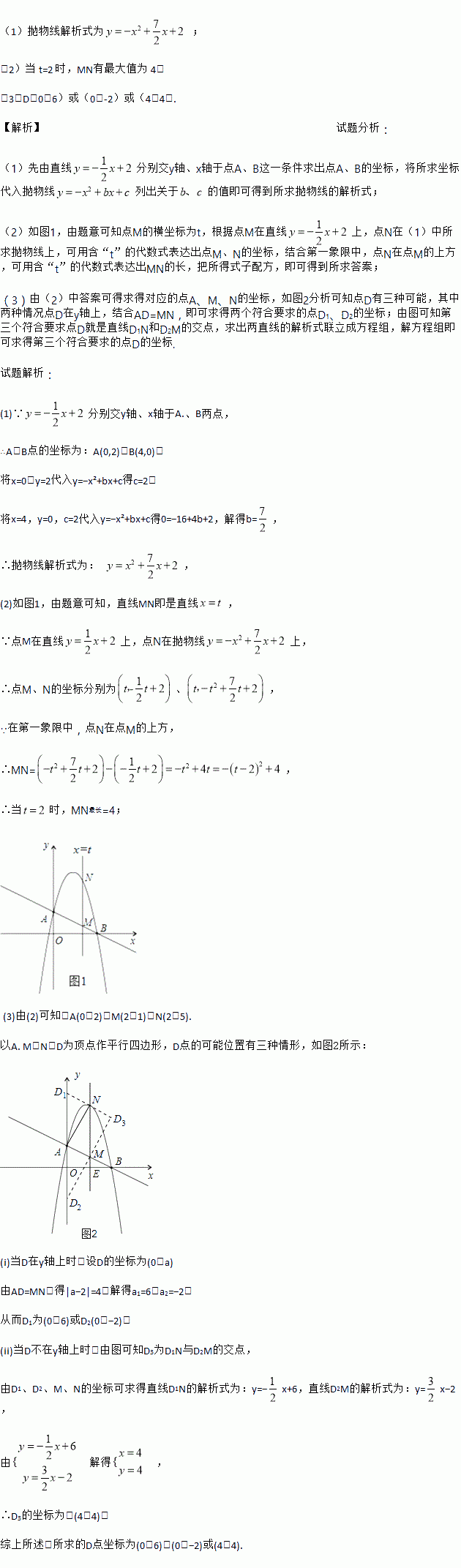 (2)作垂直x轴的直线x=t,在第一象限交直线AB于点M,交这个抛物线于点N.求当t 取何值时,MN有最大值?最大值是多少?