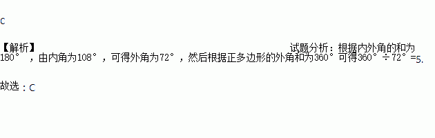 内角为108°的正多边形是 ( )