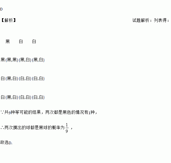 一个布袋内只装有 个黑球和 个白球,这些球除颜色外其余都相同,随机摸出一个球后放回搅匀,再随机摸出一个球,则两次摸出的球都是黑球的概率是 ( )
