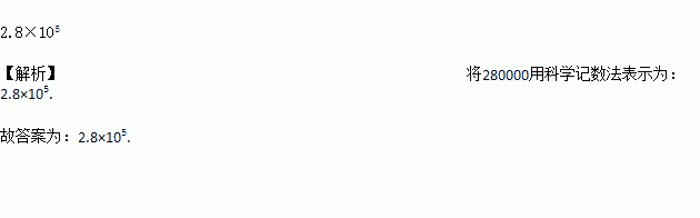 武汉的湖水面积约为280000 km2,将数280000用科学记数法表示为________