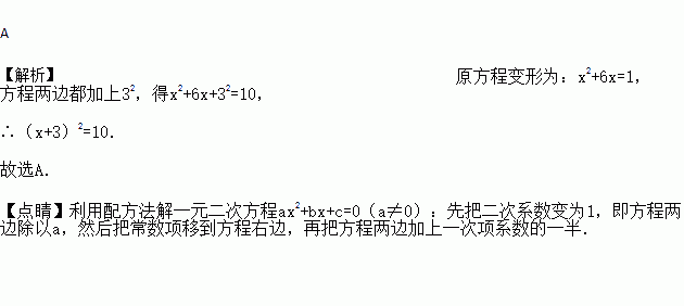 一元二次方程配方后可变形为( )
