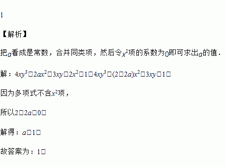 若关于x,y的多项式4xy3–2ax2–3xy+2x2–1不含x2项,则a=__________.