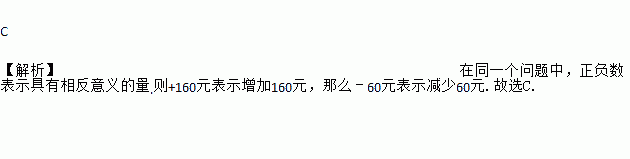 C 【解析】在同一个问题中,正负数表示具有相反意义的量.则+160元表示增加160元,那么﹣60元表示减少60元.故选C.