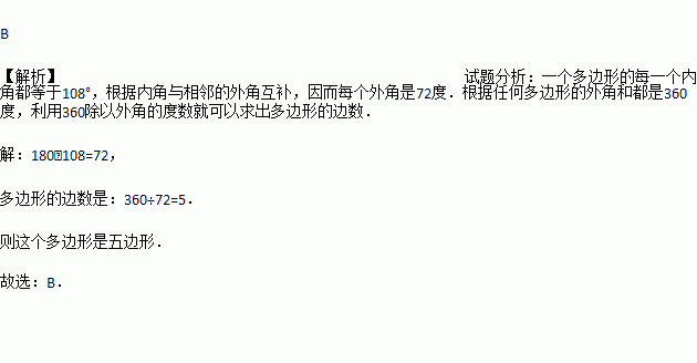 若一个多边形的每个内角都等于108°,则这个多边形是( )